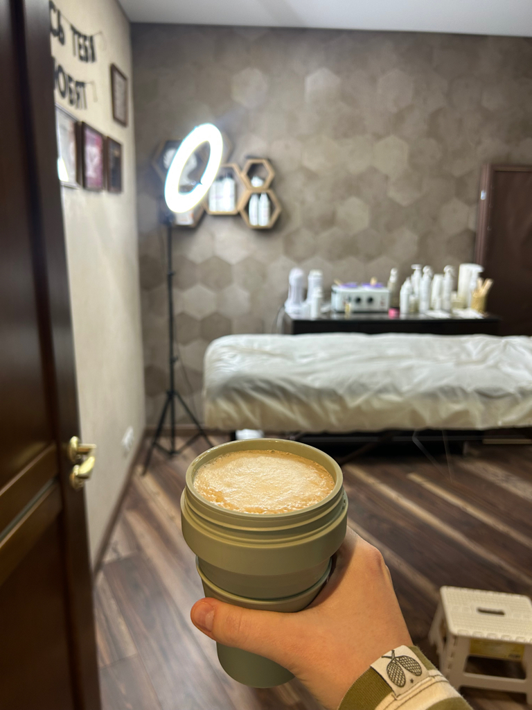 Я сегодня пришла со своим стаканом и Анечка налила мне в него какой-то невероятно вкусный кофе ☕️