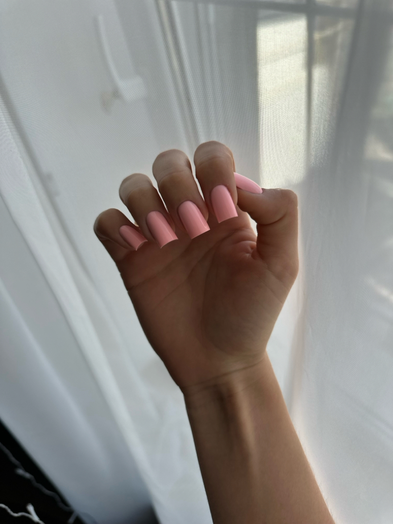 Качественный маникюр (все хорошо: снятие, обработка, покрытие, форма, подняла «клюющие» ногти, укрепила)