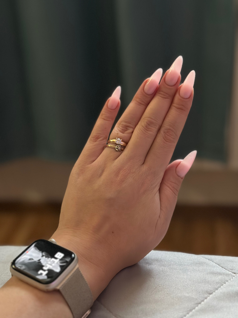 Результат работы «наращивание» у мастера Дианы смотрите на фото, они скажут всё за меня. 2 звезды стоит за то, что хотя бы вернули 50% от стоимости работы (с чем я тоже не согласна, так как вся работа - это сплошной дефект) Как ходить с такими ногтями, взлетающими наверх - не знаю. Лак местами покрыт плешиво. На фото всё видно. Хотите ли вы себе такой маникюр - выбирайте сами.