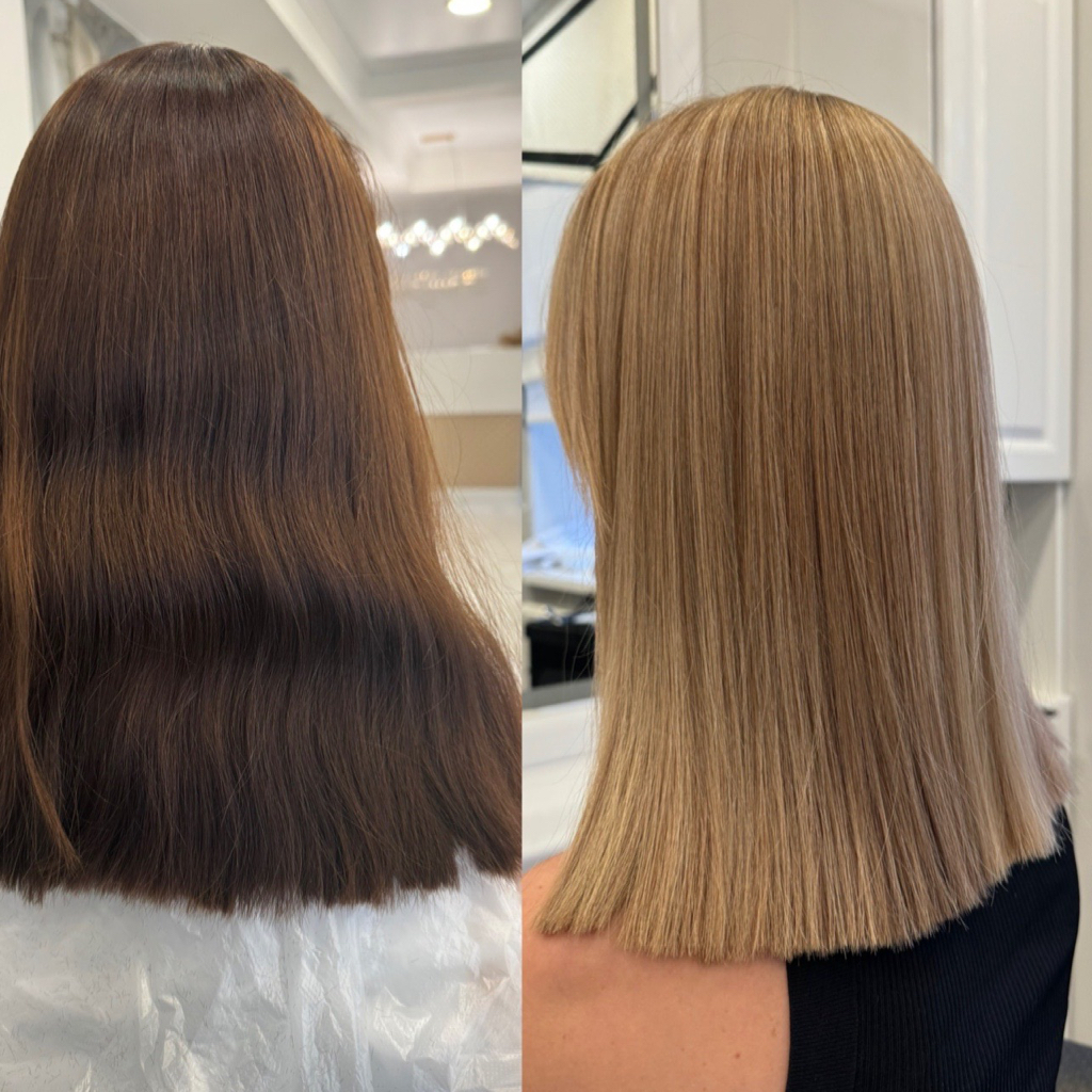 невероятно качественная работа! делали выход из чёрного, получилось очень красиво, волосы сохранили свою структуру! спасибо большое мастеру за труд! я в восторге!!