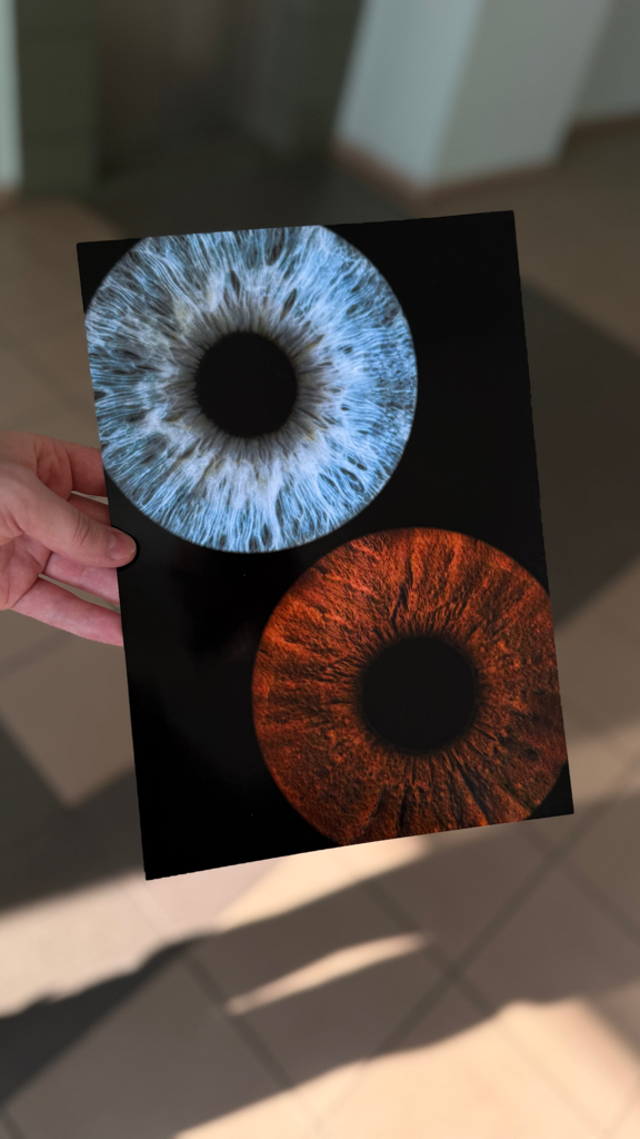 Сегодня с мужем посетили данную студию. Делали парный снимок радужки на формате А4. Нам понравился результат 😍 а также там можно выбрать и другой формат, а еще кулон и даже фото ваших радужек на стекле! Очень круто!
