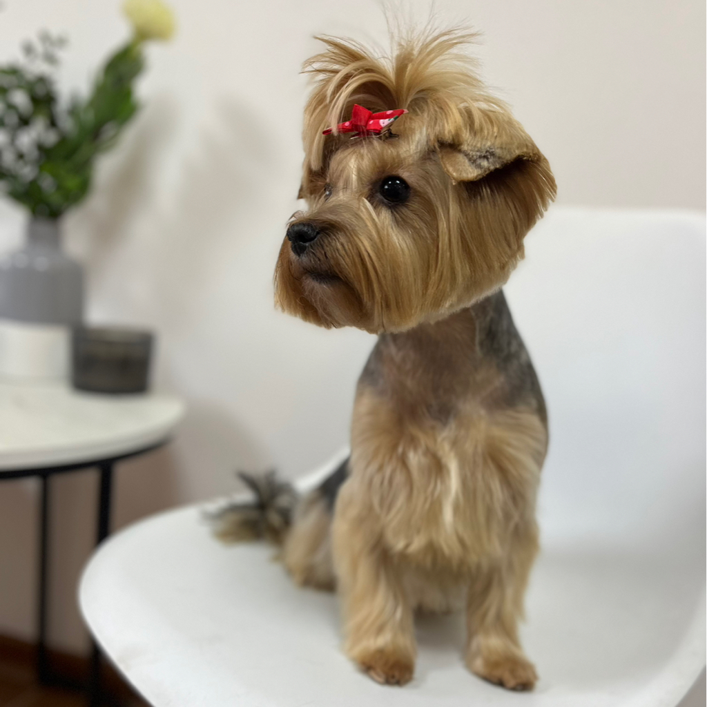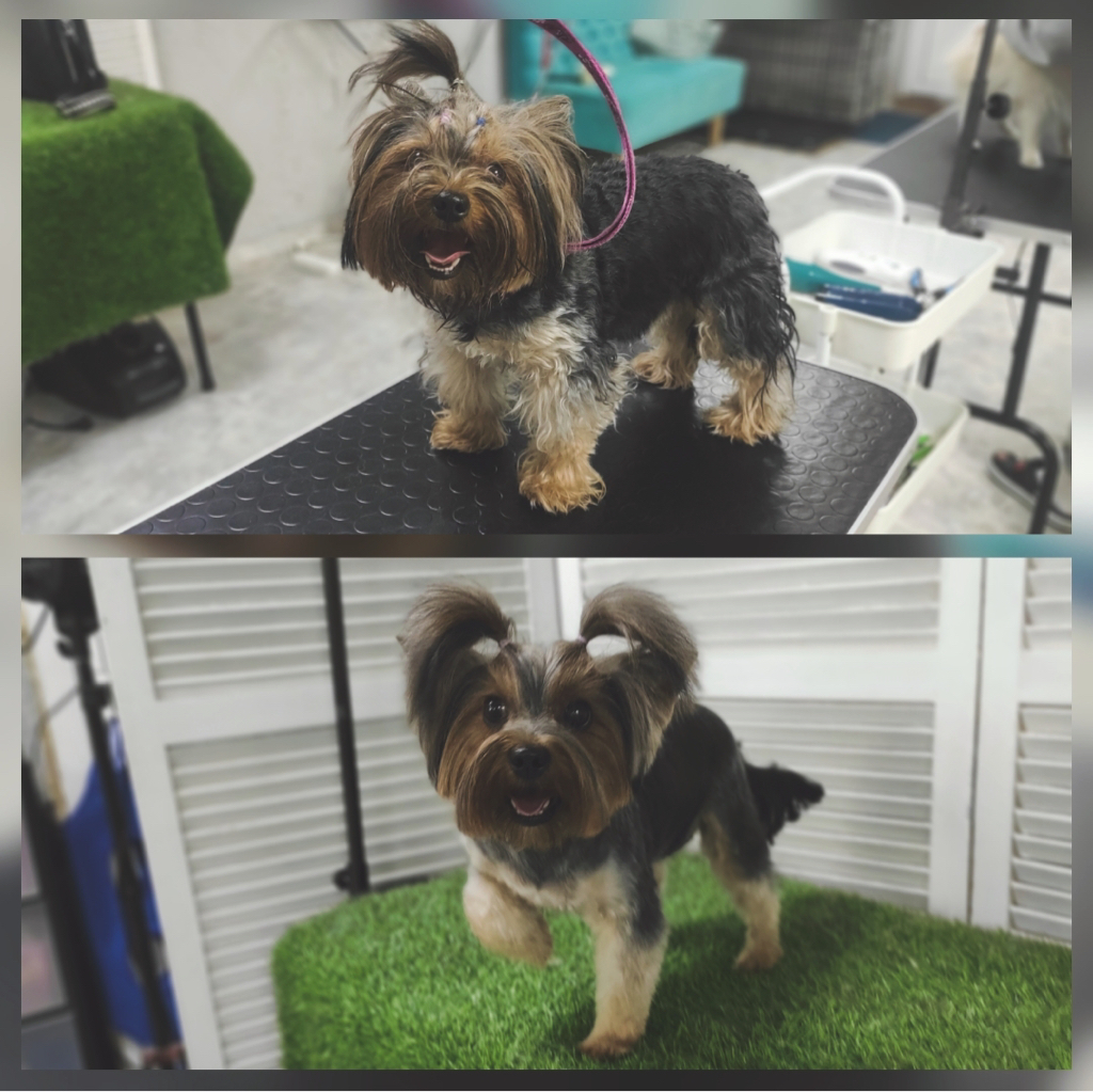 С мастером как-то коннект не сложился, потому что собака со стрижкой выглядит как кирпич на спичках с милой мордашкой, но просить подправить уже не хотелось