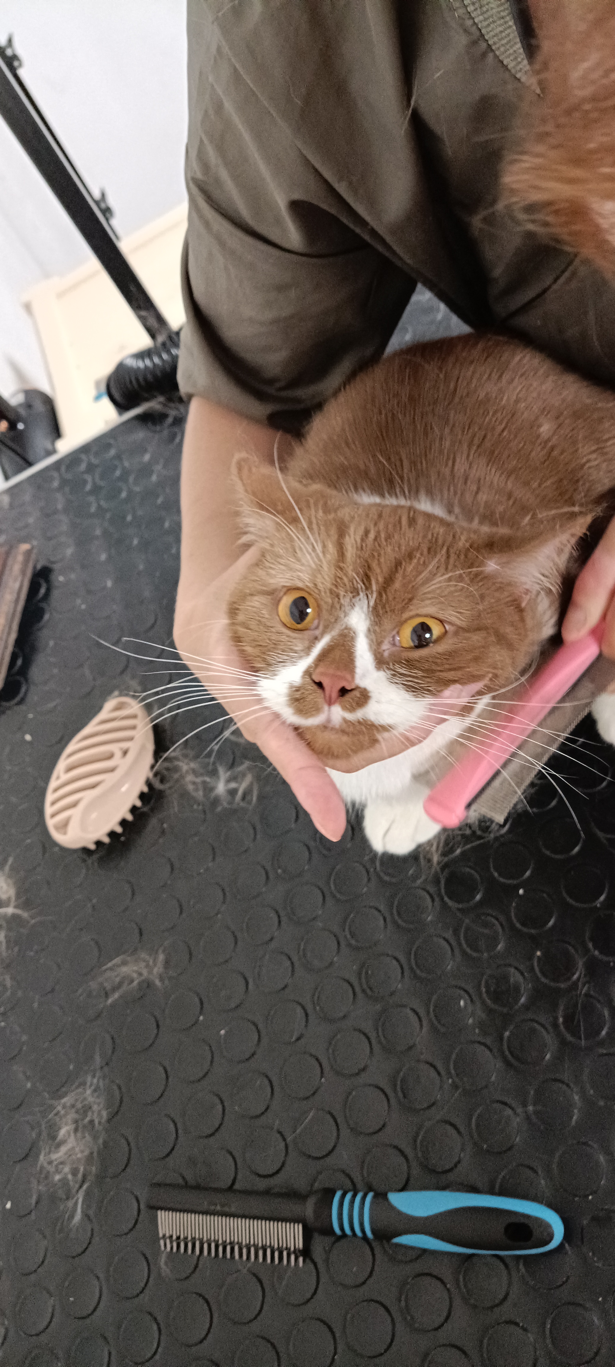 Хозяйка и кот довольны! Вычесали, когти подстригли, ушки почистили, "духами" побрызгали, разве что усы золотой пудрой не попудрили))))