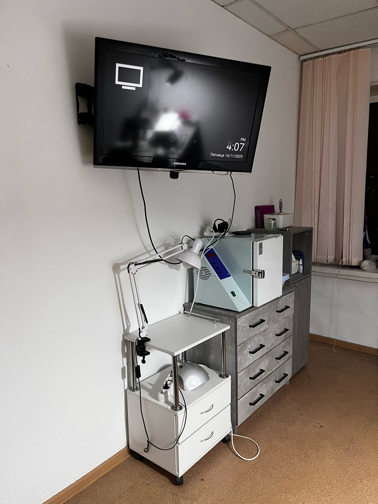 Визит прошел на 5/5, педикюр был выполнен быстро, а главное качественно! Большой выбор гель лаков и так же на ваш вкус фильмов.