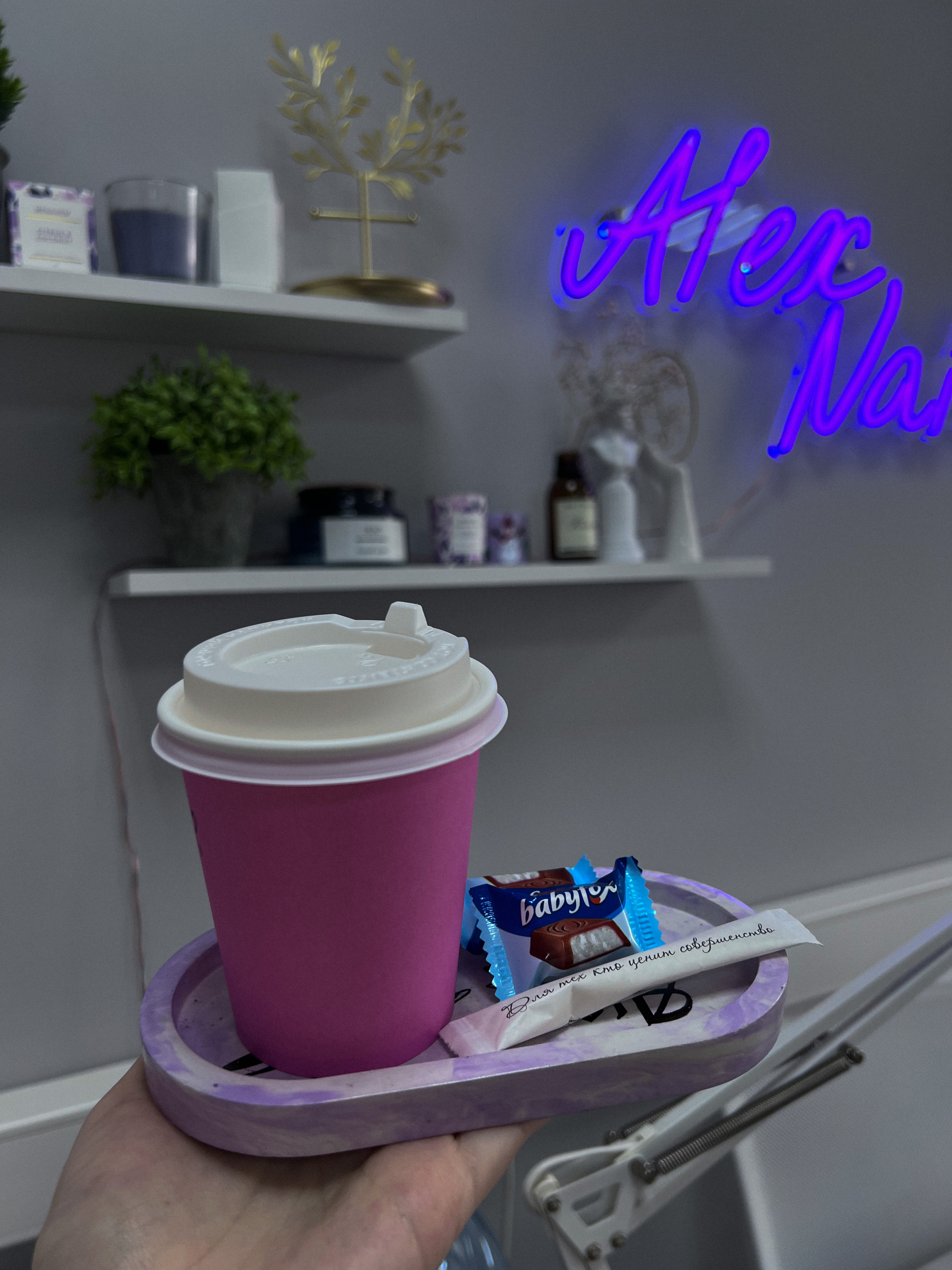 Мастер приятная и внимательная, предложила чай, кофе, маникюр получился красивый и аккуратный