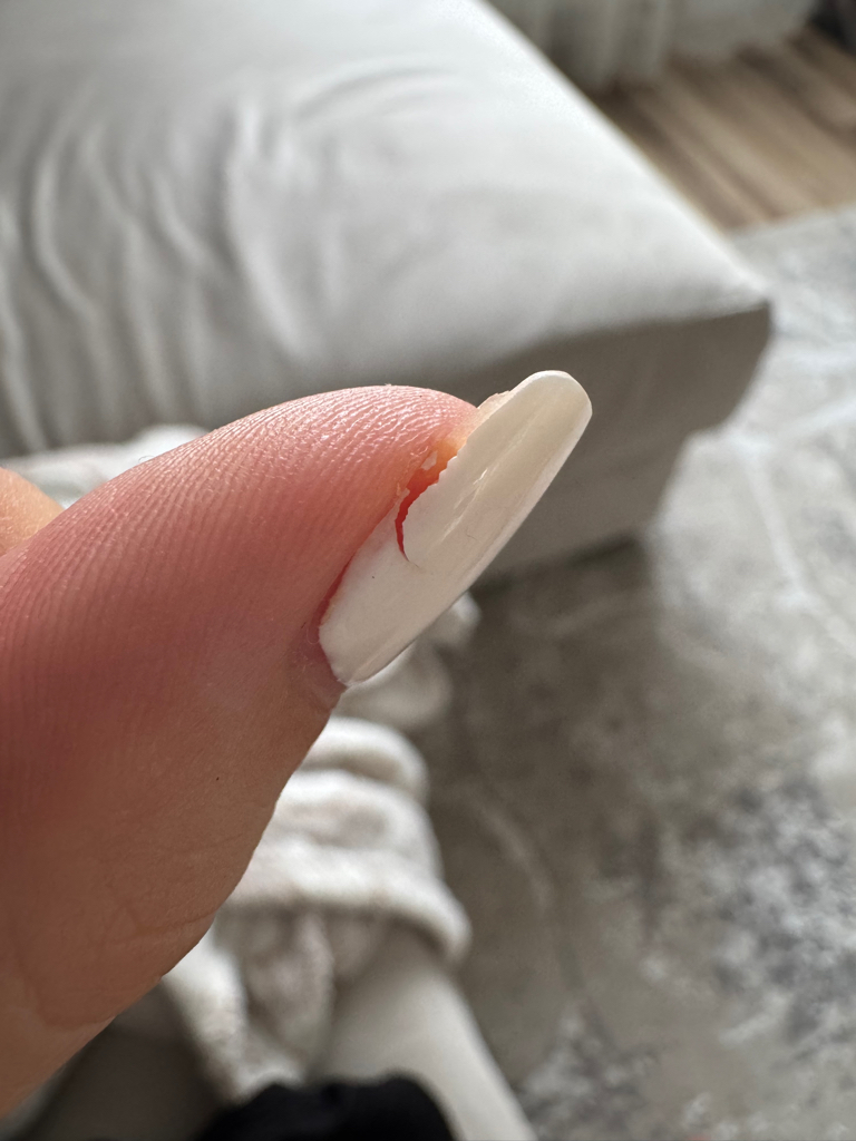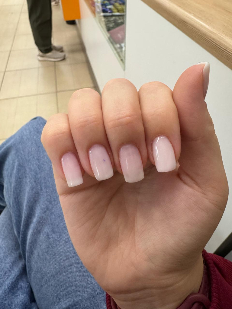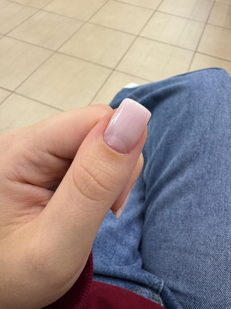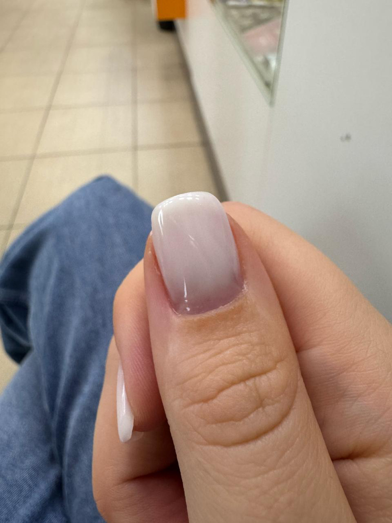 Спасибо, за ценный опыт. И потраченное время. 1 маникюр скололся в течение 3х дней, пришла на переделку (фото переделки прикладываю), студия предложила переделать еще раз у другого мастера. Итого, я за неделю 3(!) раз должна была потратить время на маникюр, который снова продержался недолго, но спасибо, что не 3 дня, как первый.