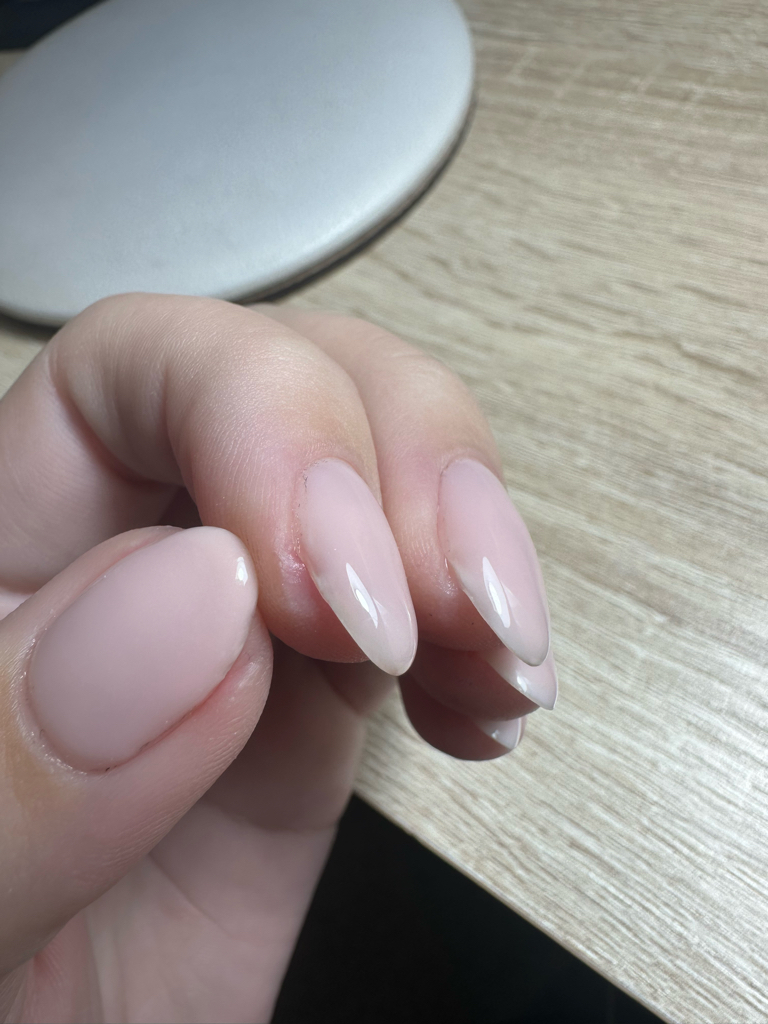Приходила на маникюр с покрытием к мастеру Ольга . Достаточно хороший сервис , но качество работы 0/10. Заплатила 2 тысячи за пропилинные точки вроста и отвратительное покрытие . Все ногти идут волной , форма тоже выглядит абсолютно разной . Прилагаю фото через 2 дня ,кутила просто огонь .Надеюсь хоть без пропилов отрастет , в чем я очень сомневаюсь …