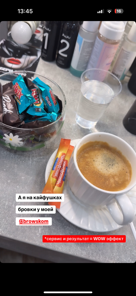 Шикарные брови мне сделали, я в восторге от качества услуги, предложили кофе, конфеты, очень уютно и дружелюбно, теперь только сюда.