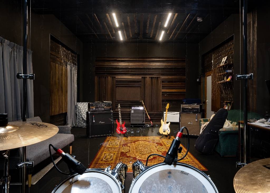 Поразил размер помещения, наличие дорогих гитарных стеков по типу Bugera, возможность регулировать с помощью программного микшера АЧХ каждого инструмента и в целом всем интерьером