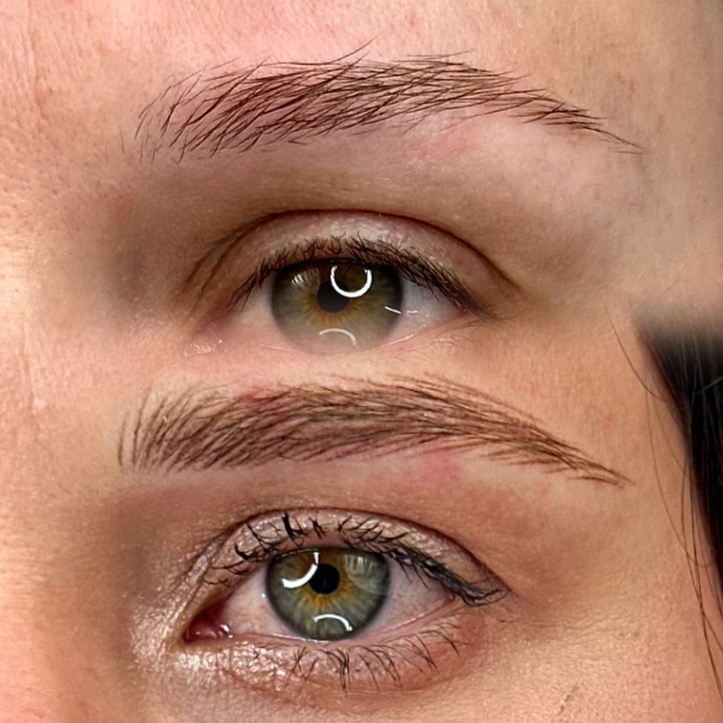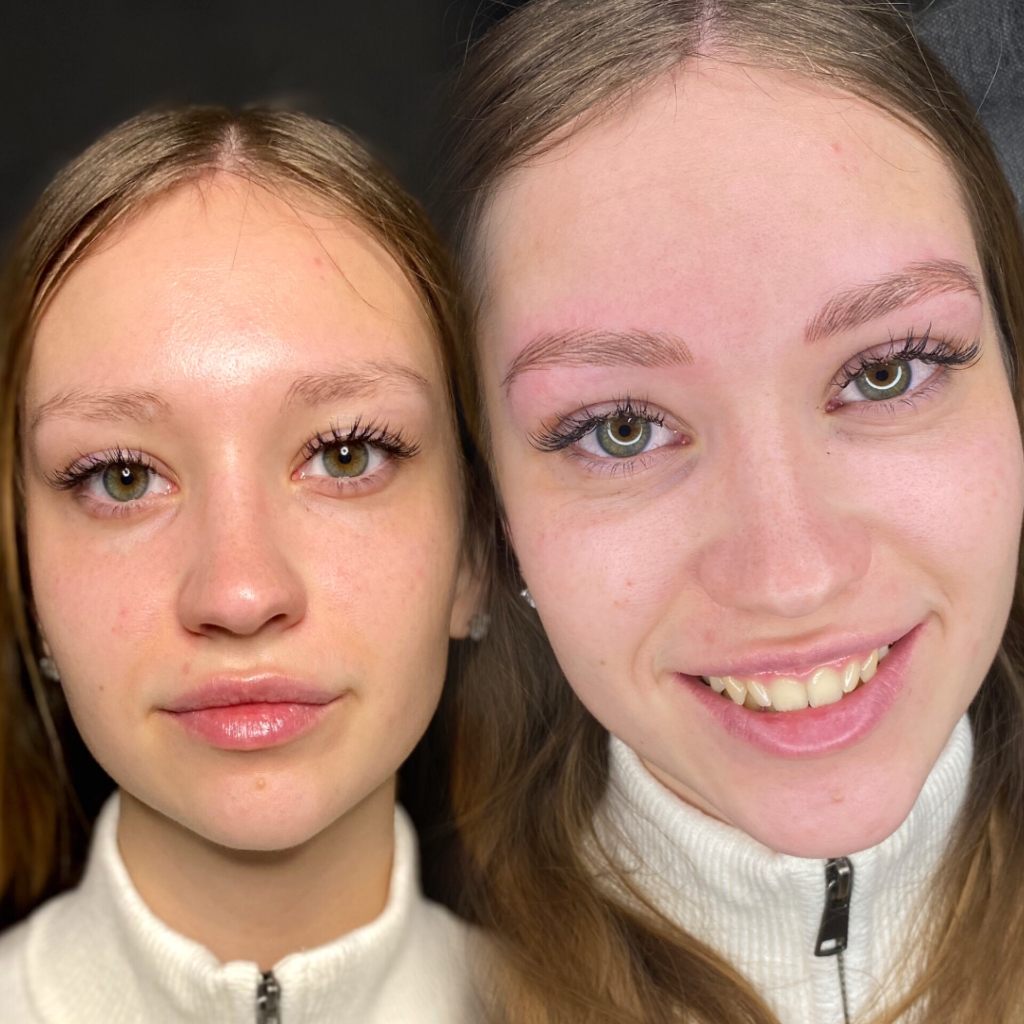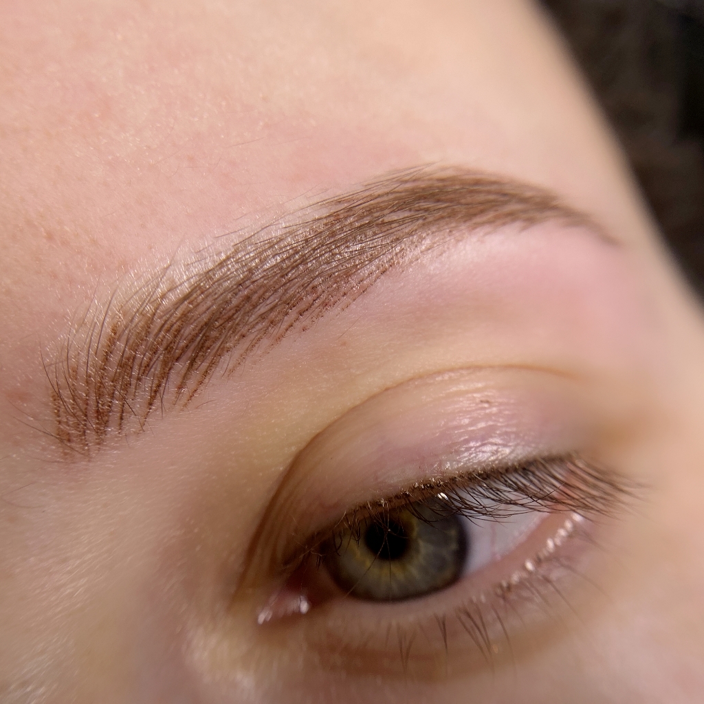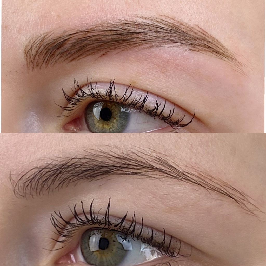 Техника выполнения волосковая с растушевкой (без порезов кожи!). Мастер подстраивает перманентные волоски под ваши естественные брови таким образом, чтобы разницы между естественными и созданными волосками не было заметно .