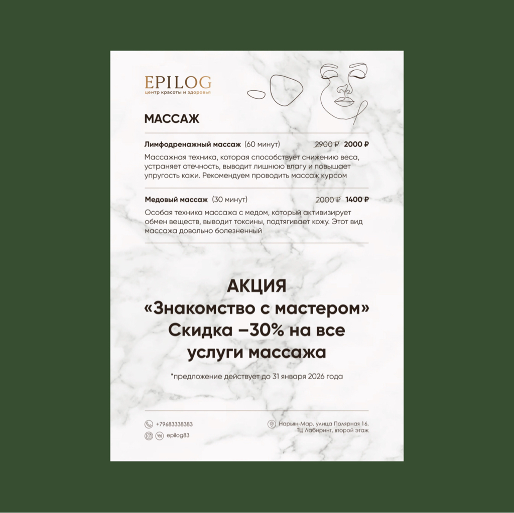 Только в январе, в честь знакомства с новым мастером, у вас есть уникальная возможность — попробовать любой вид массажа в нашей студии со скидкой -30%.