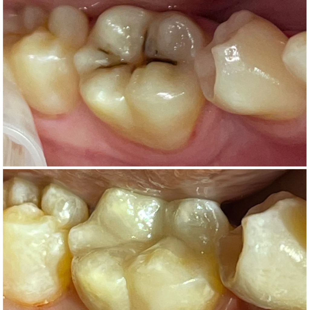 После диагностики врач очищает зуб от разрушенной ткани и бактерий. Затем в подготовленное место наносят композитный материал, который подбирается в цвет зуба для естественного внешнего вида.