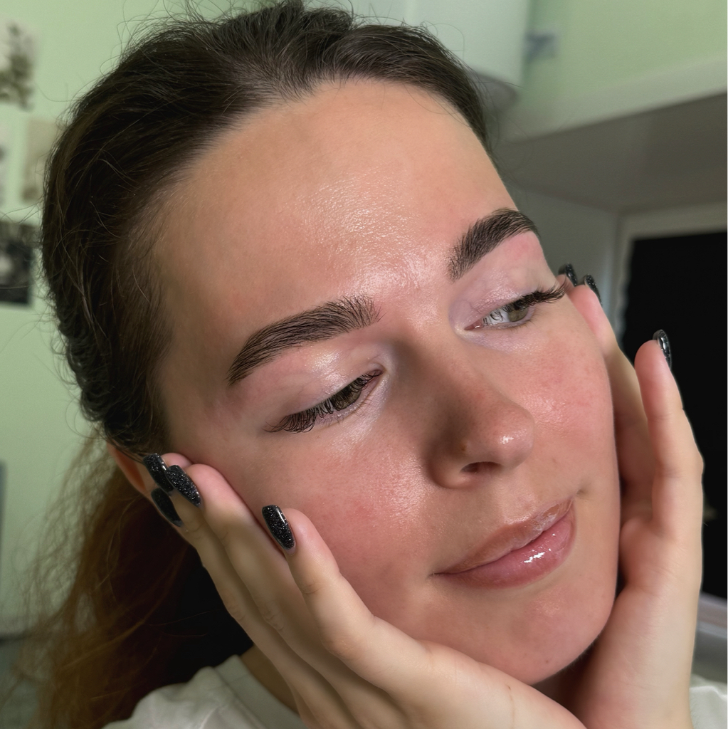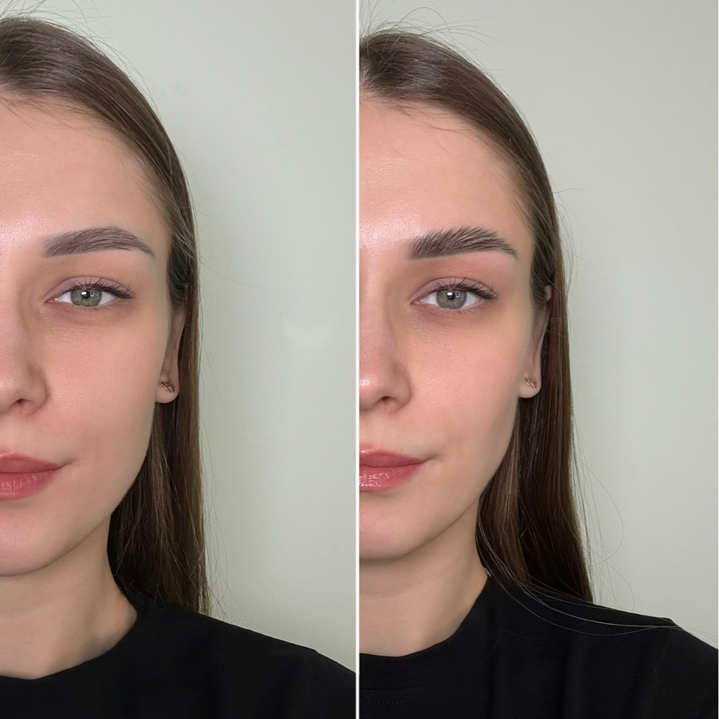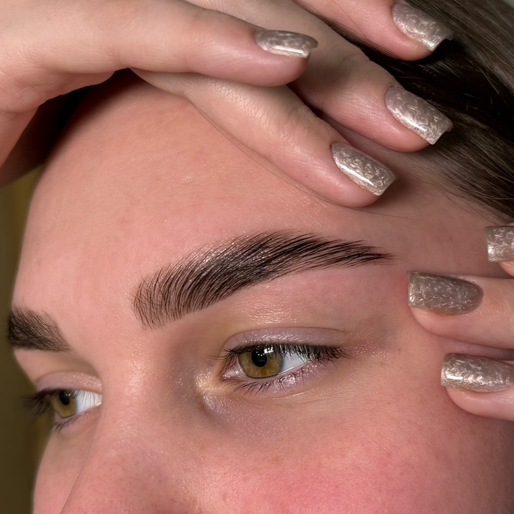 Корректирую разный уровень бровей, возвращаю нужную длину, делаю оттенок спокойным без черноты и грубых переходов.